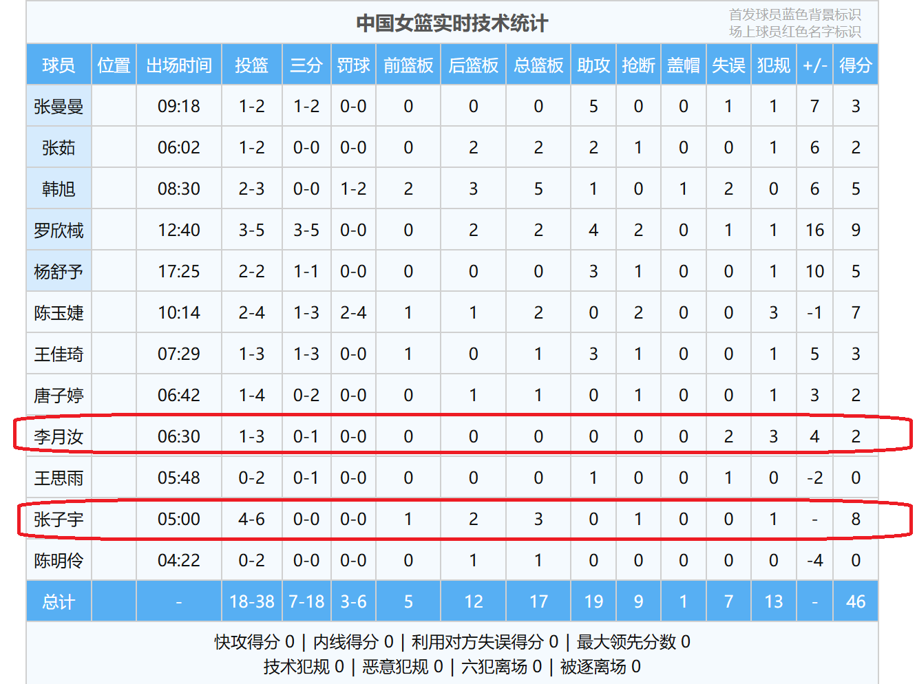 上半场比赛,李月汝打了6分钟,得了2分,却有3犯规2失误。从这组数据,也可以说明,李月汝本场比赛,没有打出自己的水平,打得十分别扭。在此,也是希望李月汝调整好心态,打好后面的比赛。当然了,就算李月汝5次犯规离场,也无所谓了,毕竟,我们还有张子宇,还有韩旭!在中锋位置上,中国女篮依然是不惧!